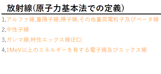 3.1メガ電子ボルト未満のエネルギーを有するエックス線は放射線の定義に含まれる。