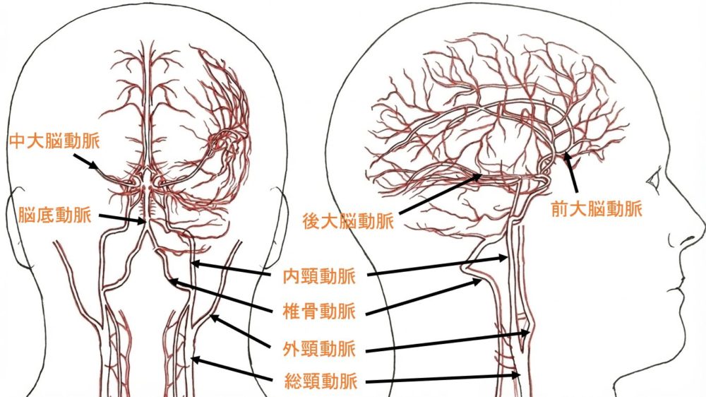 =内頸動脈(眼動脈+前大脳動脈+中大脳動脈+後交通動脈)